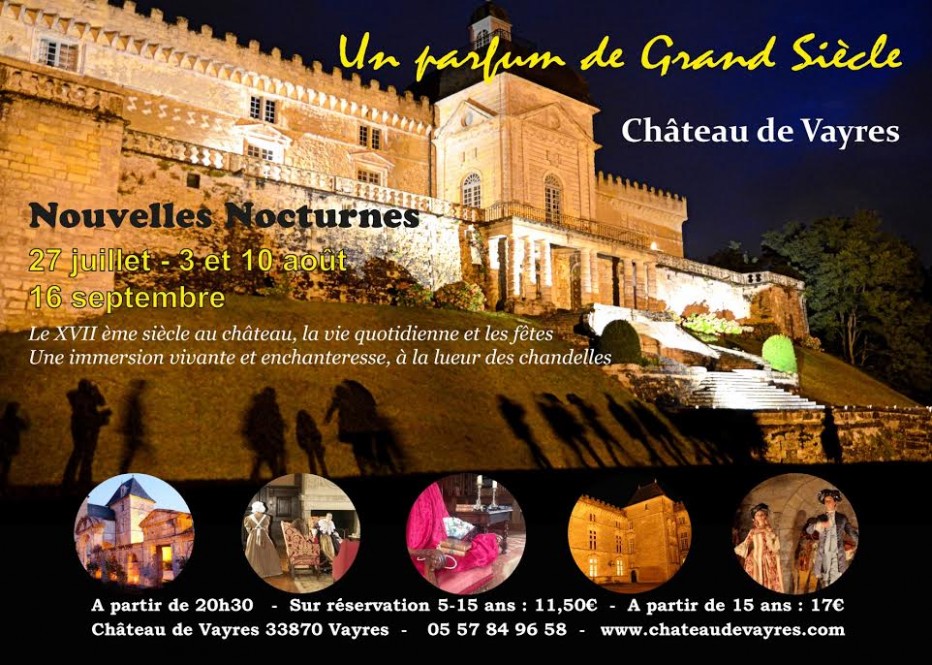 10 August : Chateau de Vayres welcomes you for the evening to discover the17th century. Reservations necessary. www.chateaudevayres.com/