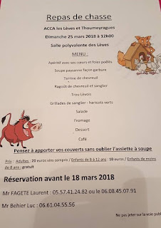 25 March 12h : Repas de Chasse at Leves et Thoumeyragues.